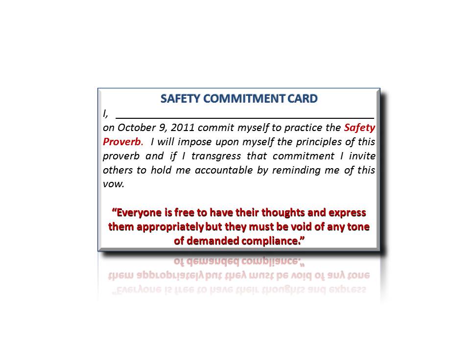 If you are serious about making your church a safer place you may want to become a “card-carrying-Christian” as well. That safety proverb goes like this: “Everyone is free to have their thoughts and express them appropriately but they must be void of any tone of demanding compliance.” Sounds like a very safe producing promise doesn’t it? Now it is up to each to JUST DO IT!